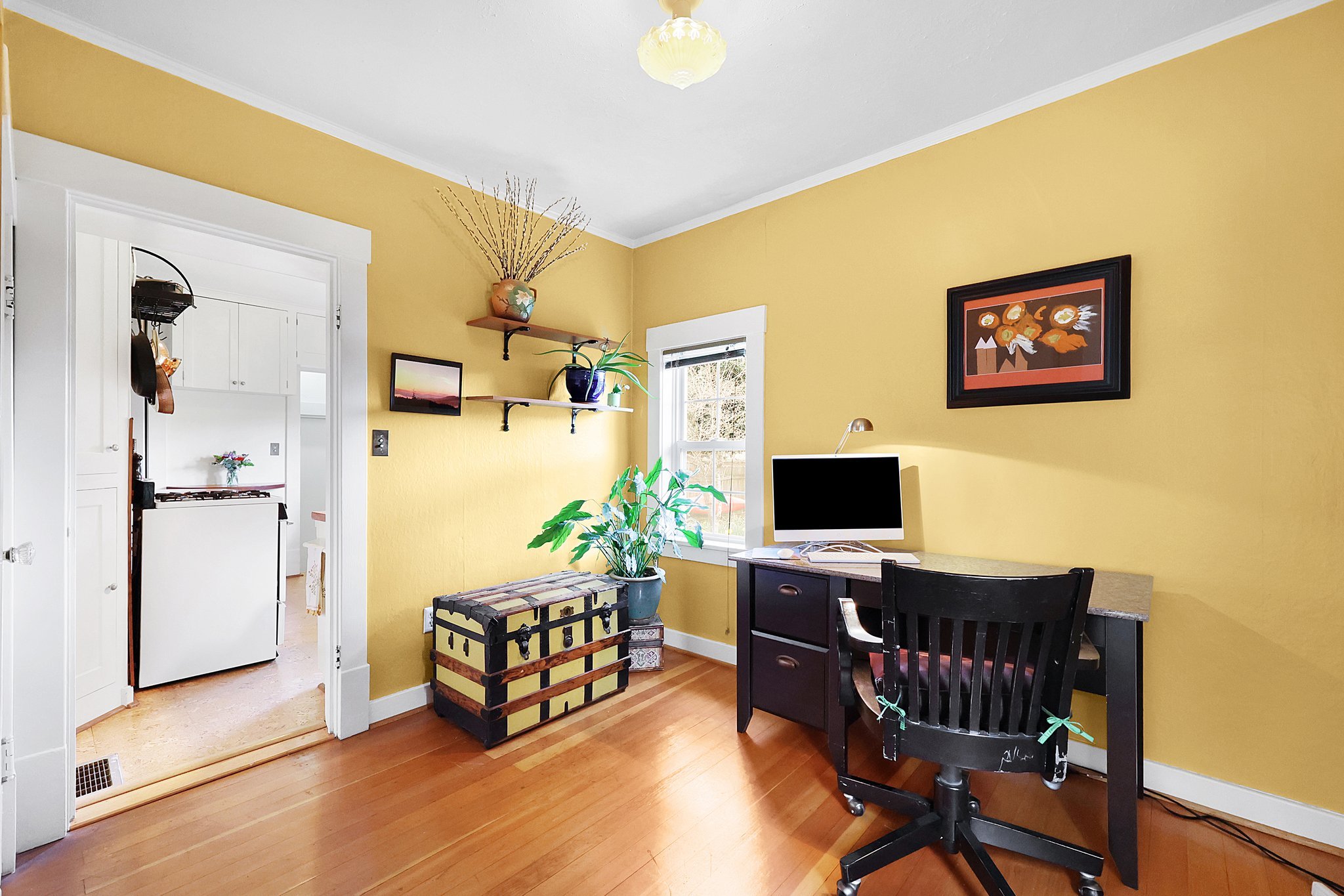 Bungalow-style home close to Mt. Tabor Park & only blocks from all the fun shops, farmers market & restaurants in Montavilla village. Both quiet and private. Old world charm intact & very efficient with an energy score of 9. Vinyl windows, hardwood floors, original built-ins & trim throughout. Cork floors in the kitchen. Step outside the back door & gather herbs & fresh produce from the garden/greenhouse. Renovated primary bedroom in the basement is fully egressed w/ beautiful new ensuite bath.